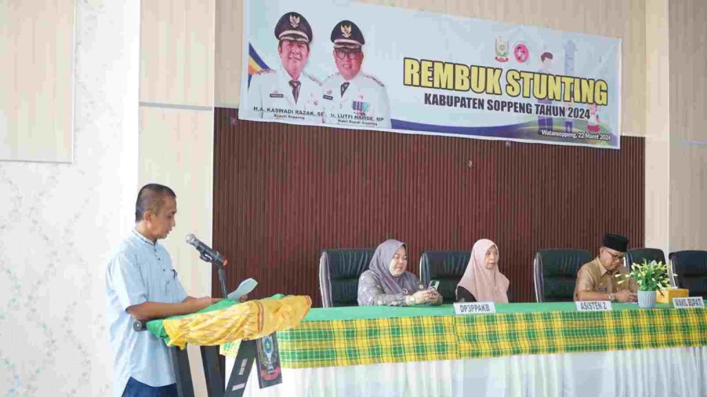 SOPPENG- Bappelitbangda Kabupaten Soppeng melaksanakan acara Rembuk Stunting Kabupaten Soppeng Tahun 2024, bertempat di Aula Kantor Gabungan Kabupaten Soppeng, Jumat, 22 Maret 2024.