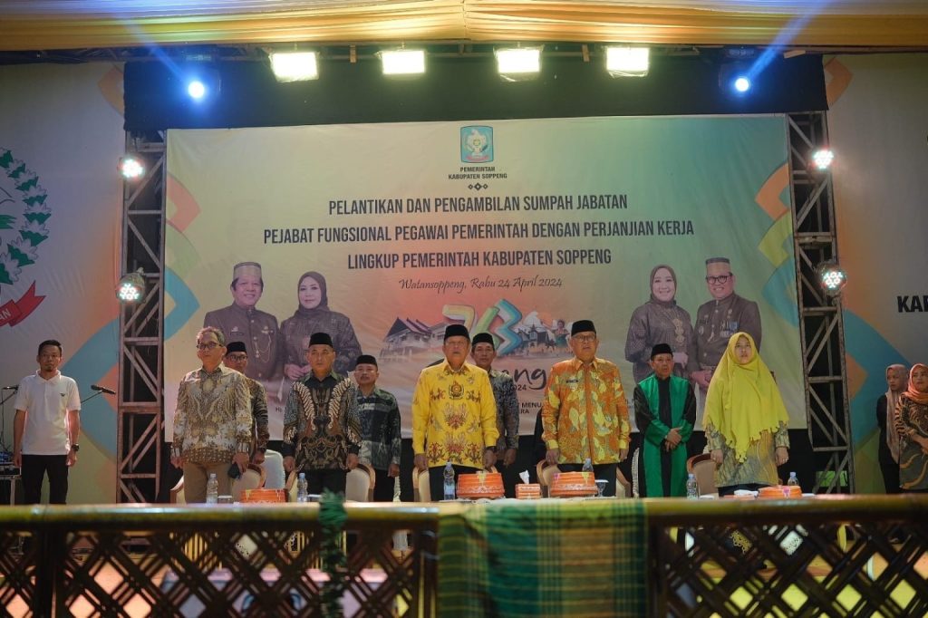 Pelantikan dan Pengambilan Sumpah Jabatan dilakukan oleh Bupati Soppeng dilanjutkan penandatanganan Berita Acara Sumpah Jabatan secara simbolis dan penyerahan surat keputusan kenaikan pangkat periode 1 Juni Tahun 2024 secara simbolis oleh Bupati Soppeng.