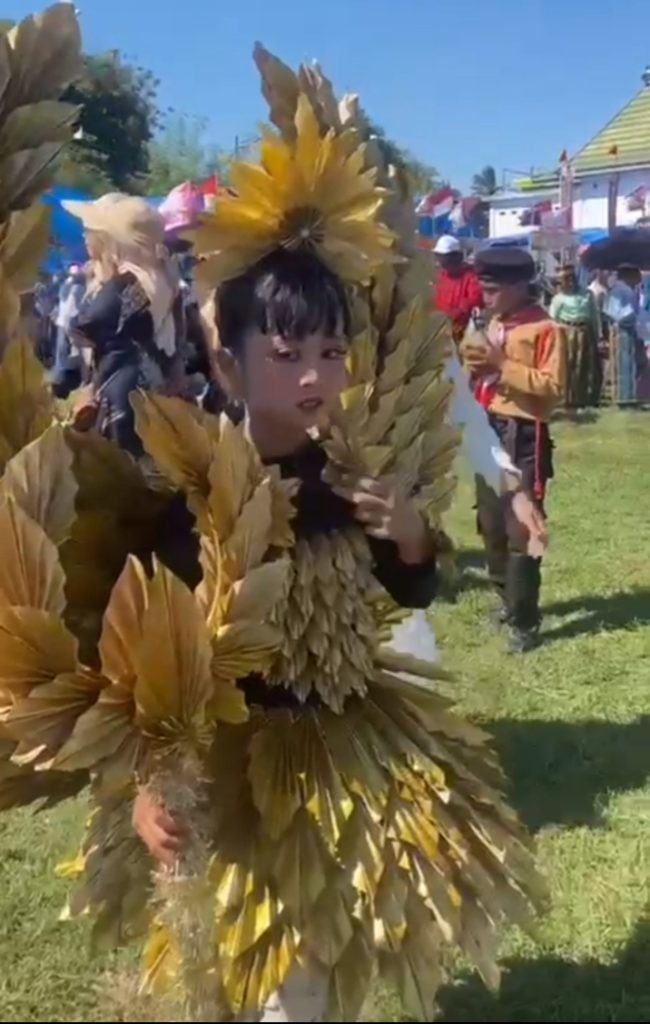 anak sekolah SD tersebut melakukan pakaian Busana yg sangat istimewa dan cantik hingga para warga yang menonton sangat terhibur