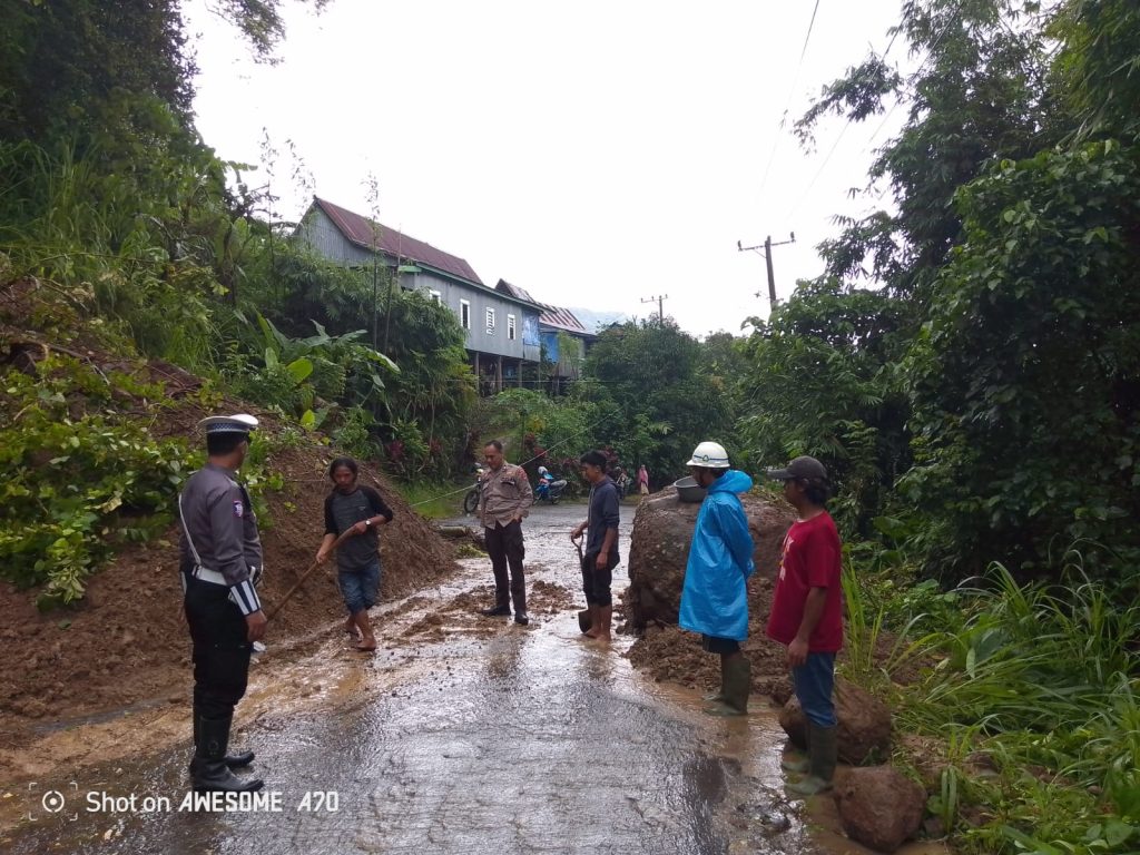 “Kami langsung melakukan tindakan, membersihkan material longsor agar jalan bisa di lewati dan menghindari terjadinya kecelakaan” Kata AIPTU Saparuddin.